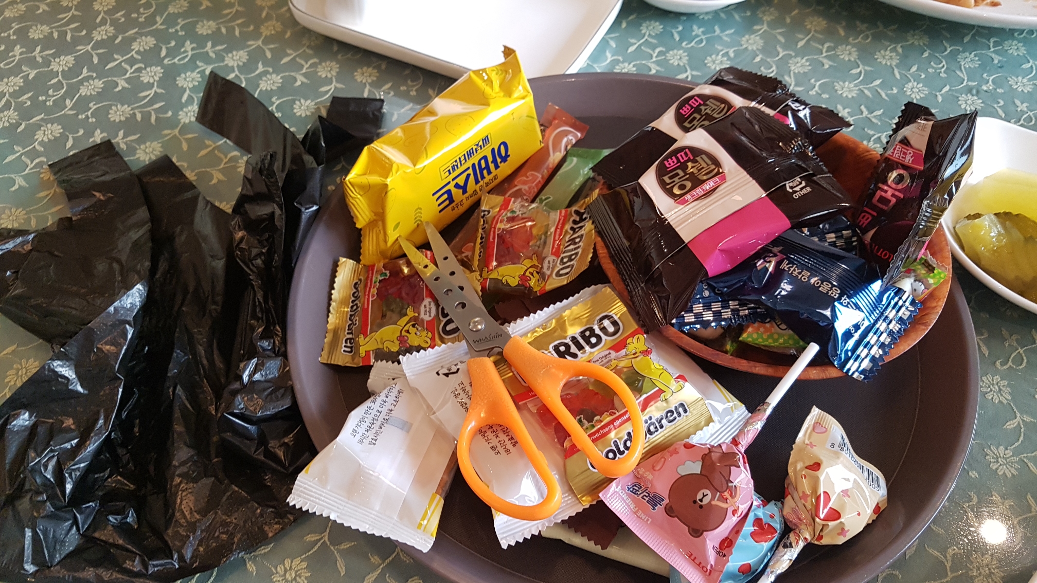 다 먹고 나니 과자를 잔뜩 집어 주십니다.